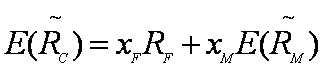 Como (F) é um ativo sem risco, a taxa de retorno é constante, o risco e a variância podem ser considerados nulos e conseqüentemente a covariância entre o ativo sem risco e a carteira (M), com risco, tende a zero. Desta forma, a equação do risco da carteira (C) pode ser escrita da seguinte maneira: |