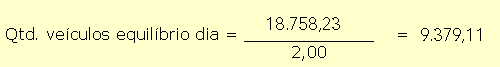 Analisando este resultado, pode-se compreender que, se a rodovia gerar uma receita de US$ 6.752.961,22 por ano, o valor presente líquido do projeto será nulo. Outra interpretação que se pode dar é que esta receita anual calculada é a receita mínima exigida para se diluir todos os custos existentes sem prejudicar a viabilidade, pois o resultado será nulo. Calculando a receita, pode-se ainda descobrir o ponto de equilíbrio em quantidade de veículos. Para tanto, basta dividir a receita anual de equilíbrio pela quantidade de dias (360). Daí, divide-se o resultado encontrado pelo valor da tarifa que é de US$ 2,00.