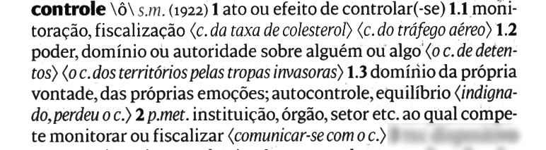 Como pode ser observado, o primeiro significado para a palavra traz a acepção de poder, ou seja, a capacidade de se impor a própria vontade a algo ou alguém. Para os fins do nosso estudo, deve ser destacada a segunda acepção da palavra como a melhor indicada para definir controle em seu aspecto administrativo, pois encerra a ideia de fiscalização - e não ‘poder’ - exercida sobre as ações de um terceiro. Assim, adotaremos o seguinte conceito para controle: