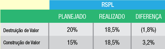 Portanto a comparação entre o indicador contábil RSPL planejado e o atingido evidencia criação de valor, mas ainda é incipiente para conhecer mais profundamente quanto está se criando e como se forma esta geração de valor.