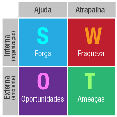 Refere-se a uma metodologia / técnica de análise muito difundida no mercado em função da facilidade de compreensão e dos resultados práticos que fornece. A sigla SWOT é a síntese das seguintes das palavras Strenghts (pontos fortes), Weaknesses (pontos fracos), Opportunities (oportunidades) e Threats (ameaças)