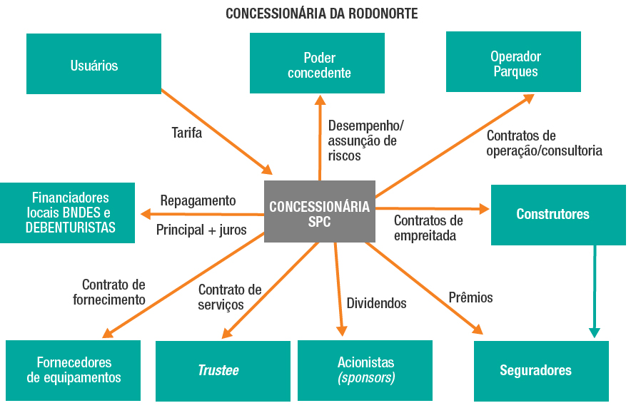 O quadro a seguir apresenta os fluxos de direitos e obrigações do empreendimento, indicando seus principais participantes: