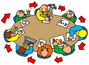 | 3) A rotação em torno da mesa, para que cada qual apresente uma ideia, prossegue, até que o grupo não tenha mais nenhuma ideia para ser apresentada. O resultado dessa fase da sessão é uma grande lista de ideias, sem conter sugestões repetidas.