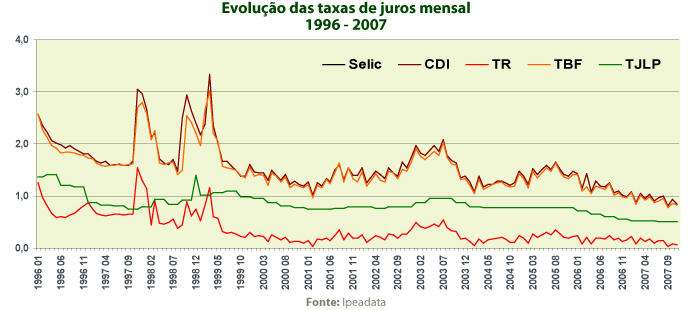 | Resumo Os juros são parte fundamental do processo de intermediação financeira e em razão de sua importância deve-se compreender seu processo de formação e os fatores que a influenciam. No Brasil, a taxa básica de juros é representada pela taxa SELIC, e é definida pelo Copom (Conselho de política monetária) e serve, dentre outras razões, ao propósito de manter a inflação futura dentro de um patamar seguro e coerente com as outras diretrizes da nação como crescimento da produção, distribuição de renda, desenvolvimento humano e taxas de investimentos. É a partir da taxa de juros básica de economia e seus diversos indexadores que se formam as taxas de juros praticadas pelo mercado e conseqüentemente os spreads bancários que nada mais são que o ganho das instituições financeiras no processo de intermediação financeira. Para regular, fiscalizar e monitorar este mercado o Governo, através do Conselho Monetário Nacional e suas entidades, vale-se de políticas econômicas que têm a finalidade alcançar os objetivos estratégicos e macroeconômicos definidos pelo governo. As políticas econômicas são quatro:
