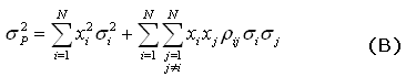 - Características dos riscos das carteiras No que tange ao risco, a representação formal do risco de uma carteira, considerando N ativos, dada por (B), mostra uma relação do risco da carteira e o coeficiente de correlação entre os ativos.