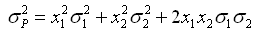 Visando melhor compreender as implicações dos co-movimentos existentes entre os diferentes ativos, estudaremos casos específicos. Inicialmente, examinaremos os casos extremos, para, posteriormente, verificarmos seus efeitos no caso intermediário. Sem perda de generalidade, nos restringiremos às carteiras compostas por apenas dois ativos. Nesse contexto, o risco da carteira pode ser representado como: