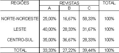 revista B e região Centro-Sul, como o cruzamento revista C e região