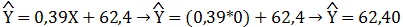 O coeficiente de determinação encontrado na análise de regressão com o auxílio do Excel “bateu” com o valor calculado manualmente de r2 = 0,966. Por outro lado os valos dos parâmetros “a” e “b” também “bateram” sendo iguais a “a” = 0,39 (já arredondado) e “b” = 69,69. É importante salientar que o valor desse parâmetro deu resultado um pouco diferenciado do resultado pelo cálculo manual (62,4) devido ao fato de que o Excel não arredonda os dados, o que culminou com essa pequena diferença. Se considerarmos no cálculo manual o valor do parâmetro “a” encontrado com três casas decimais, ou seja, 0,387, chegaríamos a um valor do parâmetro “b” igual a 69,72. |