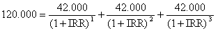 Calculá-la manualmente é bastante difícil, pois se trata de uma função polinomial de grandeza maior que dois. Portanto, para calcular a TIR dos projetos utilizaremos sistematicamente a calculadora financeira ou planilha eletrônica, habitualmente utilizada nos ambientes de trabalho. O procedimento na HP12C consiste em introduzir todos os valores do projeto da mesma forma procedida quando do cálculo do VPL, alterando-se, desta feita, a tecla da resposta exigida, conforme é mostrado abaixo: