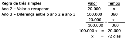 Como se pode perceber, o valor do investimento do projeto deve ser recuperado entre o segundo e o terceiro períodos. O saldo de $ 250.000 investido é completamente amortizado durante este período e alcança o terceiro ano com um saldo positivo de $ 80.000. Para descobrir-se o prazo exato basta fazer uma regra de três simples conforme procedimento a seguir: Este resultado significa