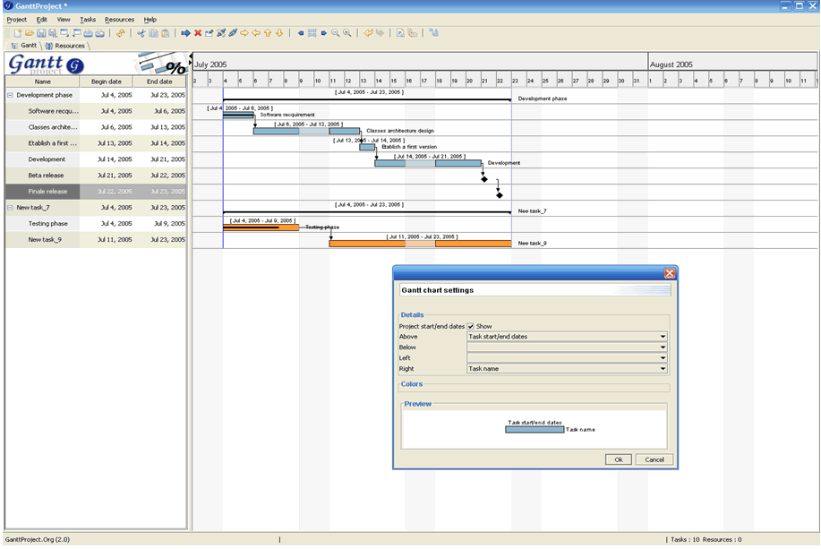 Gantt Project O Gantt Project é uma aplicação gratuita, com funcionalidades similares às do MS Project, desenvolvida em ambiente de programação Java. Este software é mantido pelo projeto SourceForge.net (http://ganttproject.sourceforge.net/pictures.php) e possui, atualmente, versão em língua potuguesa. Atualmente o Gantt Project é portado tanto para ambiente Windows quanto para ambiente Linux.