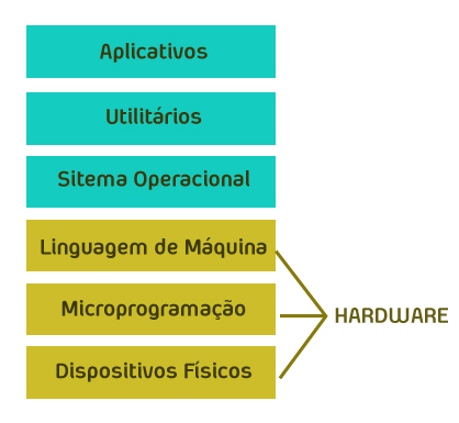 Vale ressaltar que este conceito de nível não está relacionado a uma linguagem ser melhor ou superior pelo fato de ser de alto nível e o outro ser ruim por ser de baixo nível. Observe a figura abaixo que no nível “mais alto” estão os aplicativos e utilitários e no nível “mais baixo” está a linguagem de máquina, microprogramação e os dispositivos físicos.