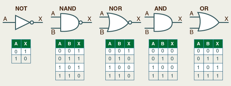 E (AND) OU (OR) NÃO (NOT) NÃO E (NAND) NÃO OU (NOR) OU EXCLUSIVO (XOR)