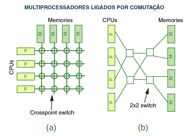 Outra forma de interligação é usar um equipamento de comutação, (switch), estabelecendo uma configuração comutada simples e até multinível.