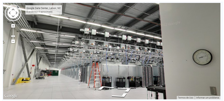 Você pode fazer uma visita virtual aos datacenters do Google através do endereço https://www.google.com/about/datacenters/inside/streetview/