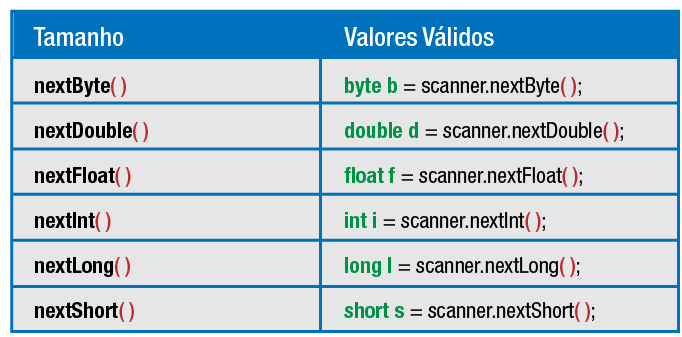 Apresentamos a seguir como utilizar a classe scanner para ler dados numéricos: