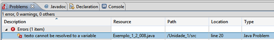 Se tentarmos executar o código do exemplo anterior, teremos a seguinte mensagem de erro: