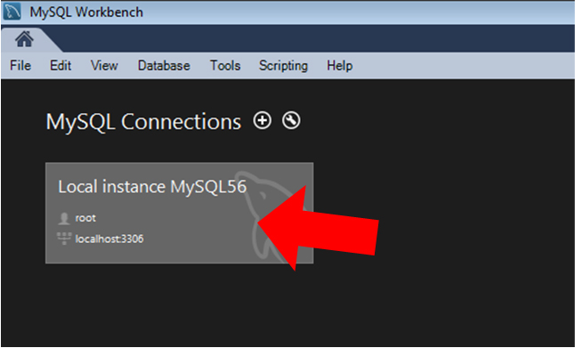 No Workbench, clique no local indicado para se conectar com o servidor MySql.