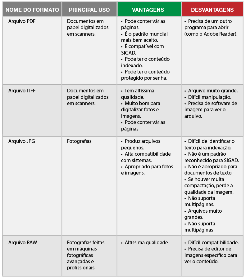 Há várias formas de transformar um documento ou algo físico em formato digital, vamos ver as características dos principais formatos: