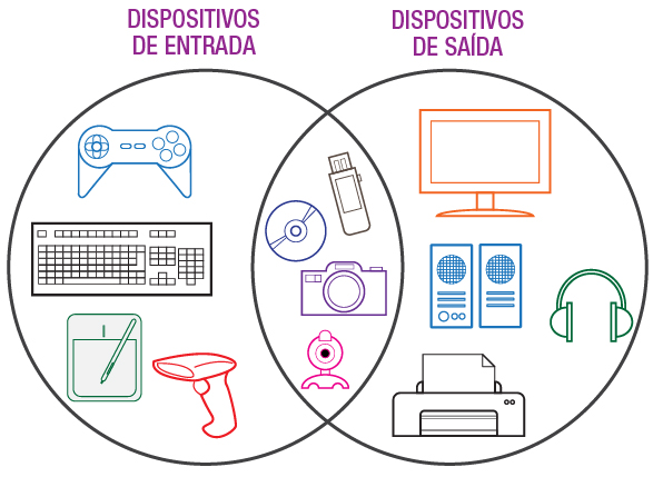 Os dispositivos de entrada e saída são os principais responsáveis por promover a interação entre computador e usuário. Os dispositivos de entrada são utilizados para que o usuário possa enviar um comando a ser executado pela máquina. Como principais exemplos deste tipo de equipamento, temos o teclado e o mouse.