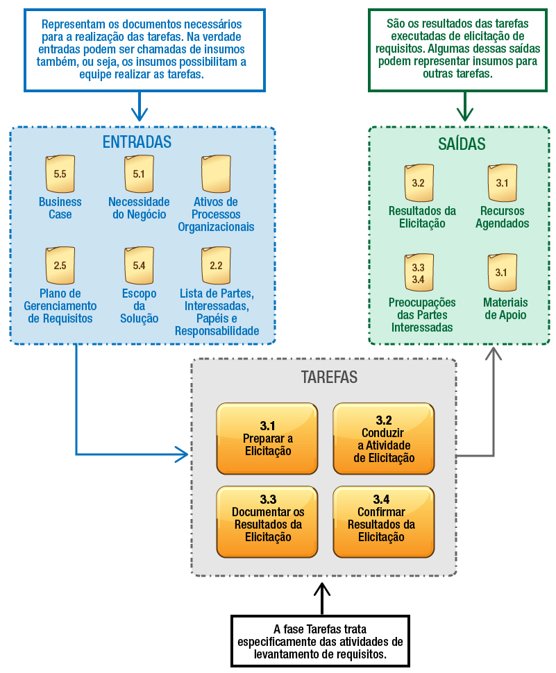 Note que o quadro apresenta 3 fases: Entradas, Tarefas e Saídas.