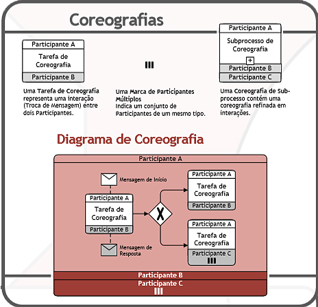 Os elementos de coreografias representam a troca de informações entre um ou mais participantes do processo.