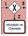 No exemplo temos o fluxo 1 conectando com um desvio, esse desvio por padrão seguirá o caminho 2, caso o fluxo 3 seja falso. |