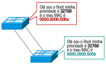 Ainda conforme Filippetti (2008), um ID de um switch é usado para a escolha de ponte raiz da rede, além de determinar a porta raiz. Para determinar o switch raiz, as prioridades do mesmo e o endereço MAC são combinados. Se os dois switches tiverem o mesmo valor de prioridade, então o endereço MAC torna-se um critério de desempate para descobrir qual possui o menor ID. Geralmente a prioridade dos equipamentos vem configurada por default de 32.768, desta forma, os endereços MAC dos equipamentos já entram em disputa para saber quem é o menor endereço MAC, para tornar-se o Root, isto é, a raiz da rede.