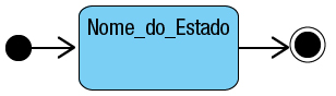 Além de estados simples, a UML define dois estados especiais: o estado inicial e o estado final. Cada um tem sua própria notação única. O estado inicial de um objeto é modelado como um ponto sólido com uma seta apontando para o primeiro estado. O estado final é representado por um círculo ao redor do ponto sólido. Setas indicam a sequência de estados, ou seja, o ciclo de vida do objeto. Importante saber que ao chegar ao estado final, não há como o objeto mudar de estado, pois ali encerra o seu ciclo de vida.