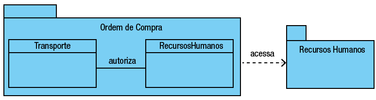 Veja o exemplo abaixo, onde o pacote “Ordem de Compra” acessa e utiliza o componente “Gerente” do pacote “Recursos Humanos”.