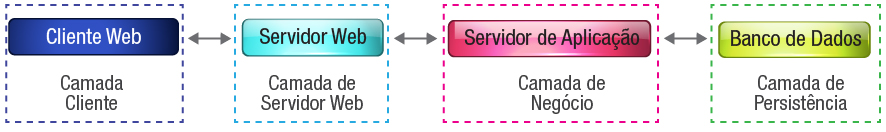 A figura a seguir apresenta um exemplo de uma aplicação web de acordo com o padrão em camadas: