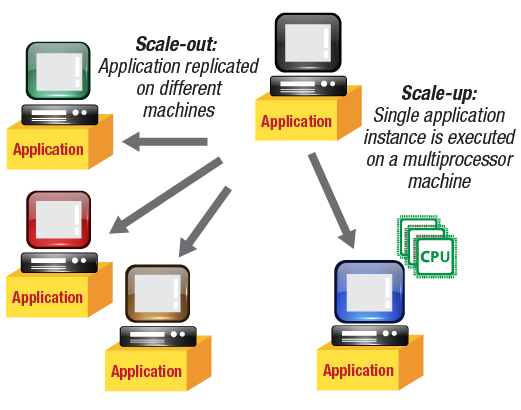 No mundo perfeito e sem capacidade de hardware adicional, como a carga aumenta, o rendimento do aplicativo deve permanecer constante (ou seja, 100 TPS), e o tempo de resposta por solicitação deve crescer apenas de forma linear (ou seja, 10 s). Uma solução escalável, então, é permitir que a capacidade de processamento adicional a ser implantado para aumentar o rendimento e diminuir o tempo de resposta.