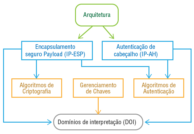 Abrange os conceitos gerais, os requisitos de segurança, definições e mecanismos, definindo a tecnologia IPSec.