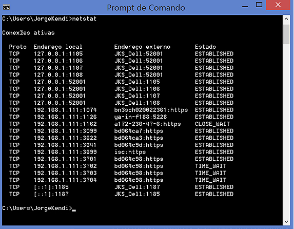 Pode-se utilizar uma ferramenta que acompanha o sistema operacional: netstat, ou ferramentas adicionais como o TCPview da suíte Sysinternals.