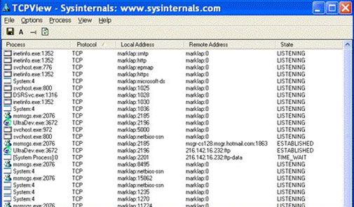 Abaixo um exemplo de listagem de portas da ferramenta TCPView.