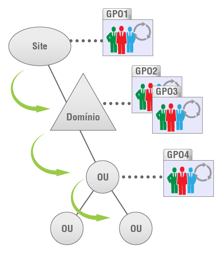 Por exemplo, pode-se configurar em nível de site uma GPO para que os usuários troquem a senha a cada 30 dias. Porém, no domínio foi configurada uma GPO desativando essa política. Nesse caso, a política vigente será a do domínio.