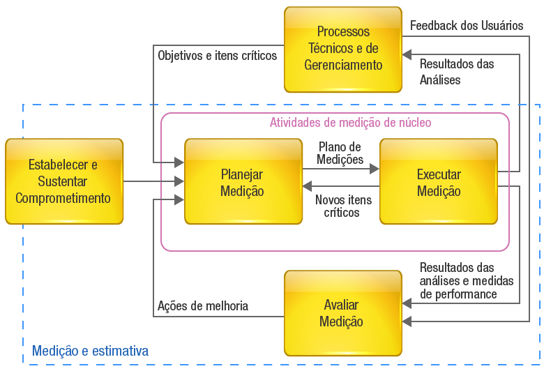 - Juntamente com o Modelo de Informações para Medição, provê um framework para a implementação de medições em projetos.