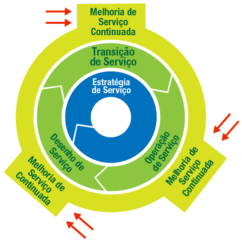 De acordo com ARAGON (2008), o núcleo do ITIL é composto por cinco publicações, cada uma delas relacionada a um estágio do ciclo de vida do serviço, contendo orientações para uma abordagem integrada do gerenciamento de serviços, conforme ilustra a figura abaixo: