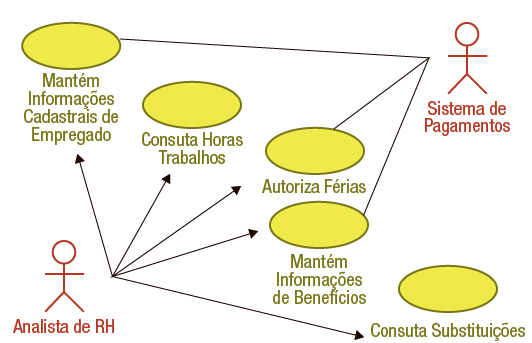 A UML (Unified Modeling Language) permite que requisitos funcionais sejam organizados em unidades chamadas de casos de uso. Os casos de uso definem uma série de instâncias, onde cada uma estabelece uma sequência de ações a serem realizadas pelo sistema. Tais ações provêm um resultado observável para um ator.