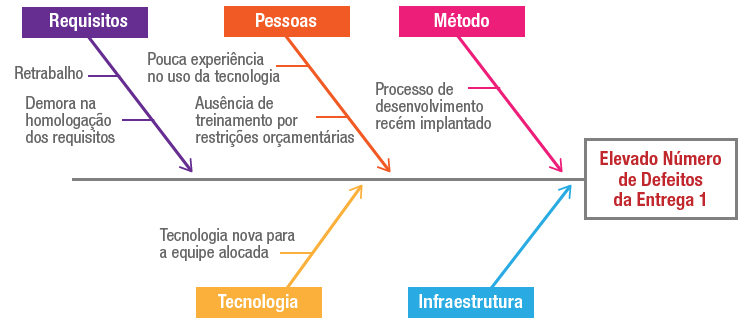 O diagrama de causa-efeito tem por objetivo demonstrar de forma gráfica as potenciais causas de variação ou problema, conforme exemplifica a figura abaixo: