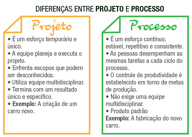 No tópico anterior estudamos o conceito de projeto e suas características, agora vamos entender como diferenciar projeto e processo operacional.