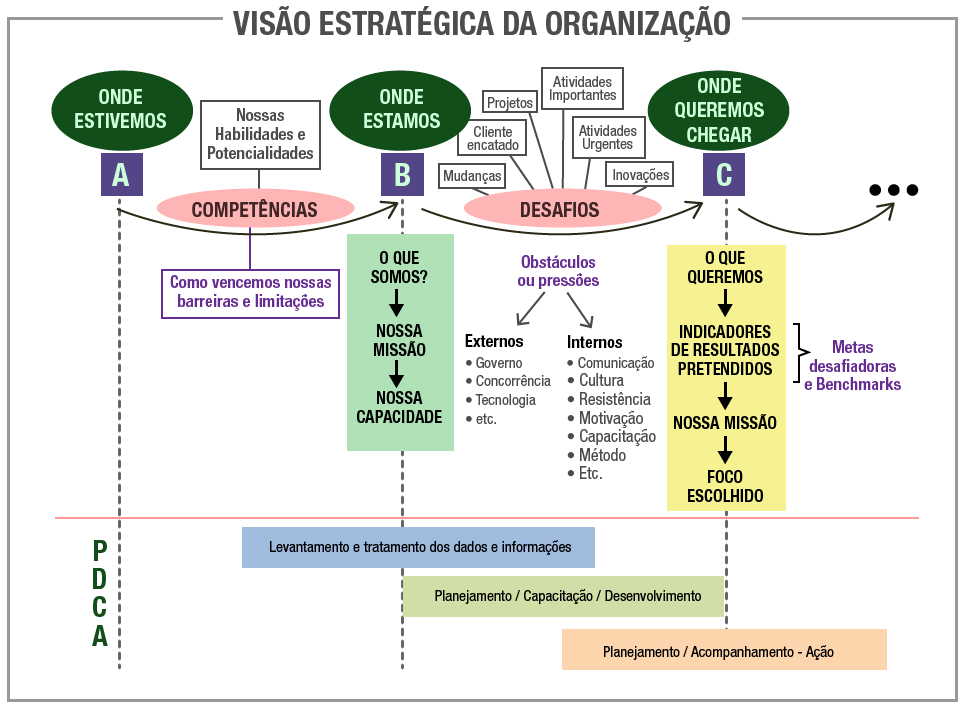 O planejamento estratégico não indica como administrar o dia a dia do trabalho, mas mostra como estruturar ações, ajudando os gestores a organizarem suas ideias e direcionar suas ações. A concretização destas pode ser viabilizada por meio da elaboração de projetos, conforme, ilustrado na figura abaixo.