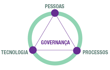 A ilustração a seguir mostra que a sistematização do gerenciamento de projetos, programas e portfólio é formada por processos, pessoas e tecnologia, com a governança sendo a responsável pela sua definição e pelo funcionamento integrado dessas dimensões.