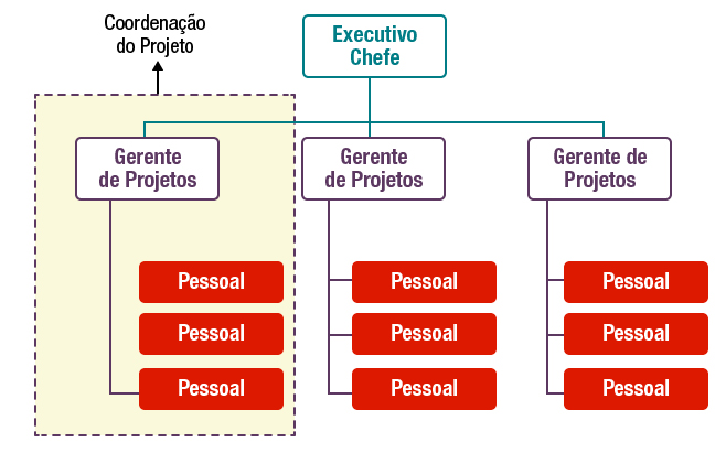 Na estrutura projetizada, o projeto tem a mesma importância das atividades de rotina. Há pessoas de todas as especialidades requeridas presentes na equipe, o que aumenta a possibilidade de resultados positivos, porém diminui o pleno aproveitamento dos recursos (em certos momentos, certas áreas podem estar sendo menos exigidas).