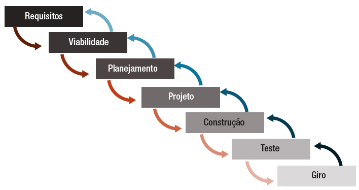 Também chamado de waterfall, esse ciclo de vida é totalmente planejado e pode evoluir a partir de fases sequenciais ou a partir de fases sobrepostas.