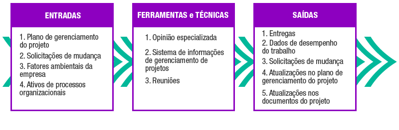 A imagem abaixo ilustra o processo Orientar e gerenciar a execução do projeto.