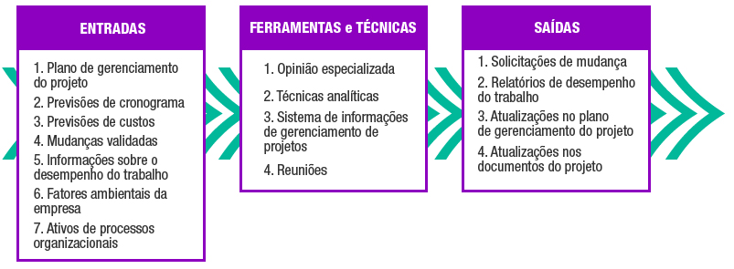 Neste momento é importante esclarecer a finalidade do Relatório de desempenho do trabalho, uma vez que as demais entradas, saídas e ferramentas e técnicas já foram estudadas, porque são utilizadas pelos processos 4.1, 4.2 e 4.3.