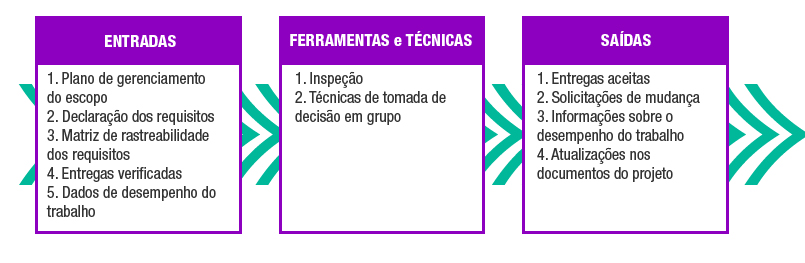O processo 5.5 do Guia PMBOK Validar o escopo, tem como objetivo a formalização da aceitação das entregas concluídas do projeto.