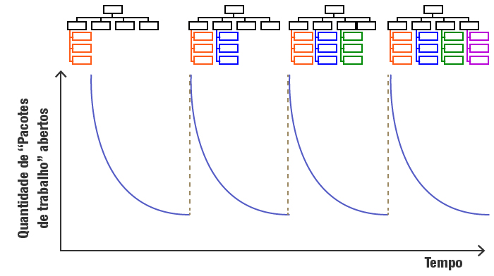 Planejamento em Ondas Sucessivas: O planejamento em ondas sucessivas é especialmente útil quando temos eventos desconhecidos no projeto. O gerente de projeto planeja somente o curto prazo, deixando os eventos de maior incerteza para depois. À medida que o projeto vai evoluindo e as incertezas diminuindo, se planeja a próxima etapa ou onda, e assim por diante, daí o nome ondas sucessivas.