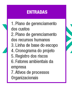 Abaixo estão descritas as entradas do processo Estimar Custos.